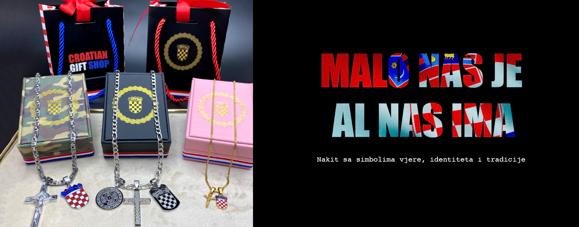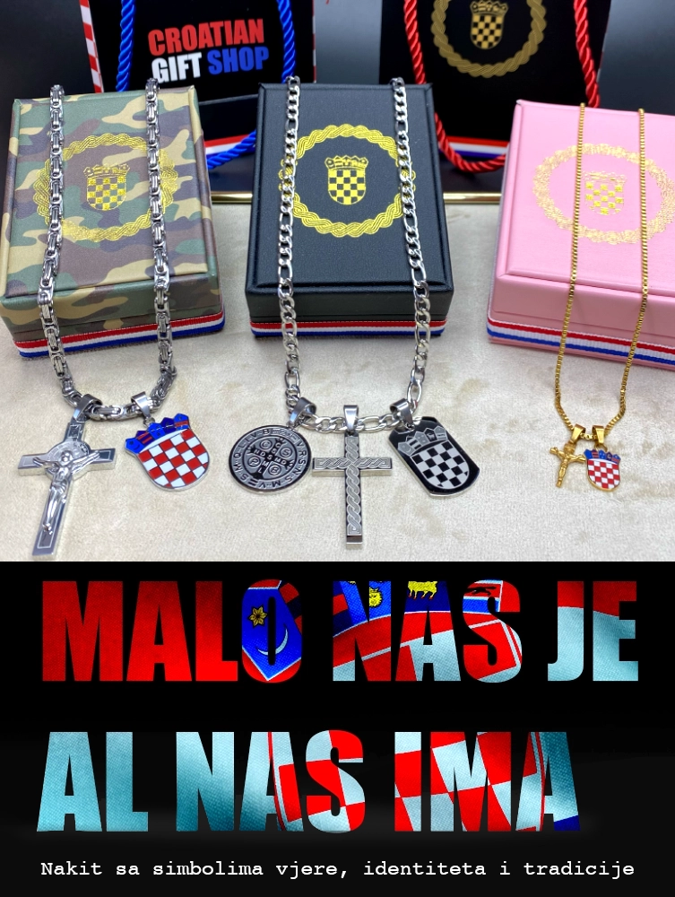 Dobrodošli u Croatian Gift Shop! Mi smo mala Hrvatska suvenirnica koja prodaje hrvatski nakit poput Hrvatskih ogrlica, lančića sa grbom, lančića sa kratom Hrvatske, privjesak sa grbom, narukvica i ostalih hrvatskih poklona i suvenira. Posebno se ističu komadi s Hrvatskim grbom, medalja Sv.Benedikta, i privjesci sa simbolima vjere i tradicije. Ako tražite originalne hrvatske poklone, bilo za voljene osobe, domoljube ili kao hrvatski poklon za strance ili dijasporu, tu ste na pravom mjestu! Naš cilj je dirnuti u srca Hrvata diljem svijeta i pružiti mali komadić Hrvatske u svakom proizvodu koji šaljemo! Šaljemo diljem svijeta!