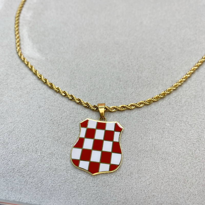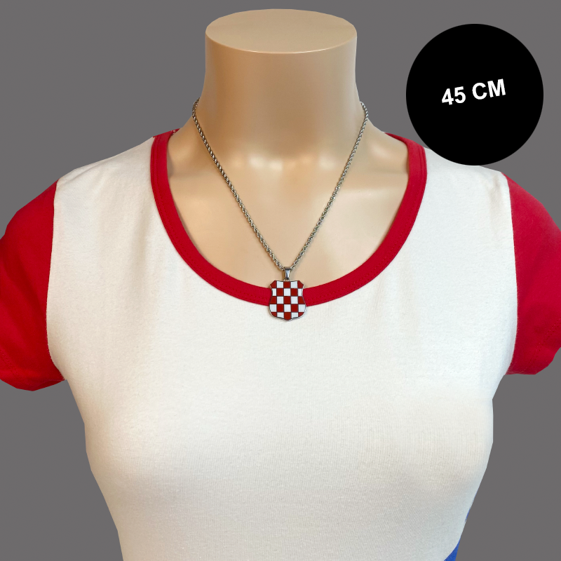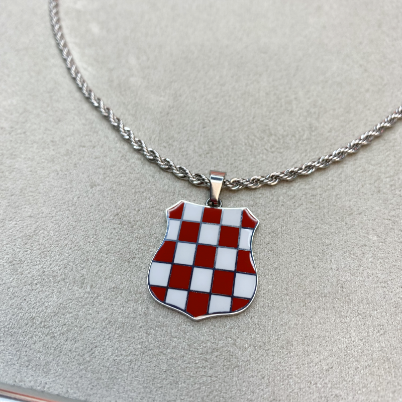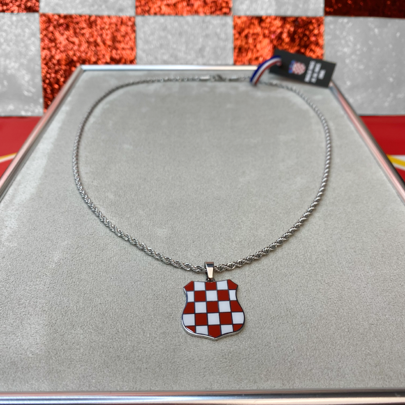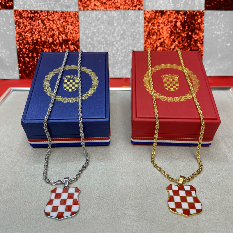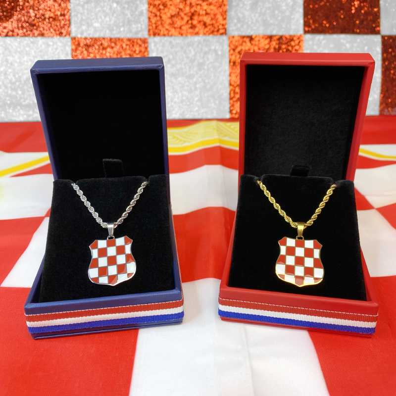 This elegant Croatian necklace features the Herceg-Bosna coat of arms without the crown pendant in vibrant enamel colors, symbolizing Croatian heritage and pride. A timeless piece of Croatian jewelry, it’s the perfect patriotic gift and a meaningful reminder of your roots. This Herceg Bosna necklace is made from durable stainless steel and comes in gold or silver color.