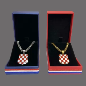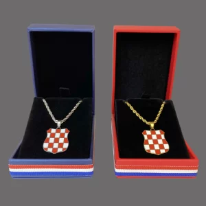 The Herceg Bosna coat of arms pendant necklace is a beautiful piece of jewelry that provides a strong historical and cultural expression to Croatians. This Croatian piece of jewelry is made from durable stainless steel and comes in gold or silver color.