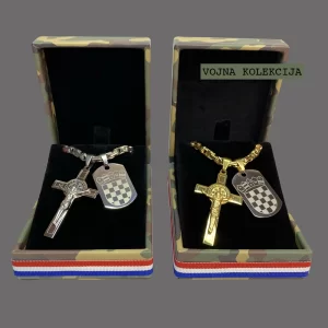 Croatian Grb Necklace and St. Benedict Cross – Figaro Chain