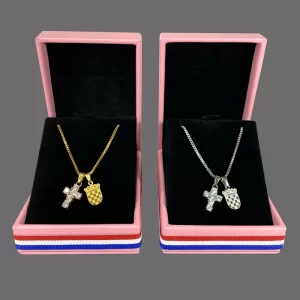 Čarobni Hrvatski lančić s privjeskom Hrvatskog grba u emajl boji i križ s kubičnih cirkona dijamantima je kombinacija koja će Vas uvijek podsjećati na Domovinu bez obzira gdje bili! Ova Hrvatska ogrlica je izrađena od nehrđajućeg čelika i dostupna je u pozlaćenoj ili posrebrenoj varijanti.
